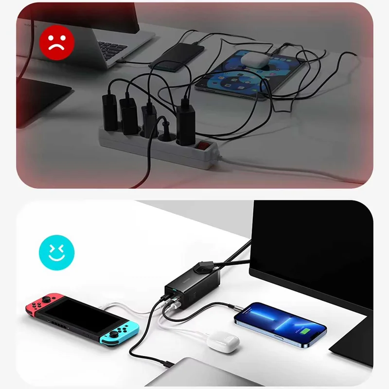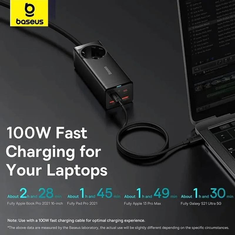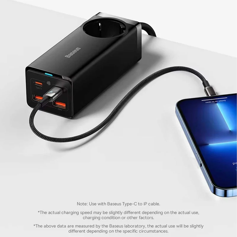 استفاده همزمان از چند وسیله برقی نیاز به خرید چندراهی برق که از کیفیت بالایی برخوردار باشد و در عین باکیفیت بودن ایمنی را هم تضمین کند بسیار اهمیت پیدا میکند. در این راستا جانبی سیم سیاری از برند بیسوس با عنوان Baseus Power Strip with 100W GAN Charger CCGAN100-1ACE BS-PSZM000401 را به لیست محصولاتش اضافه کرده که با داشتن یک سوکت، دو یو اس بی و دو تایپ سی امکان اتصال چند دستگاه به صورت همزمان برایتان فراهم خواهد بود.