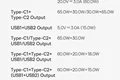 Type-C1/Type-C2: 5.0V-3.0A (15.0W); 9.0V-3.0A (27.0W); 12.0V-3.0A (36.0W); 15.0V-3.0A (45.0W); 20.0V-5.0A (100.0W)