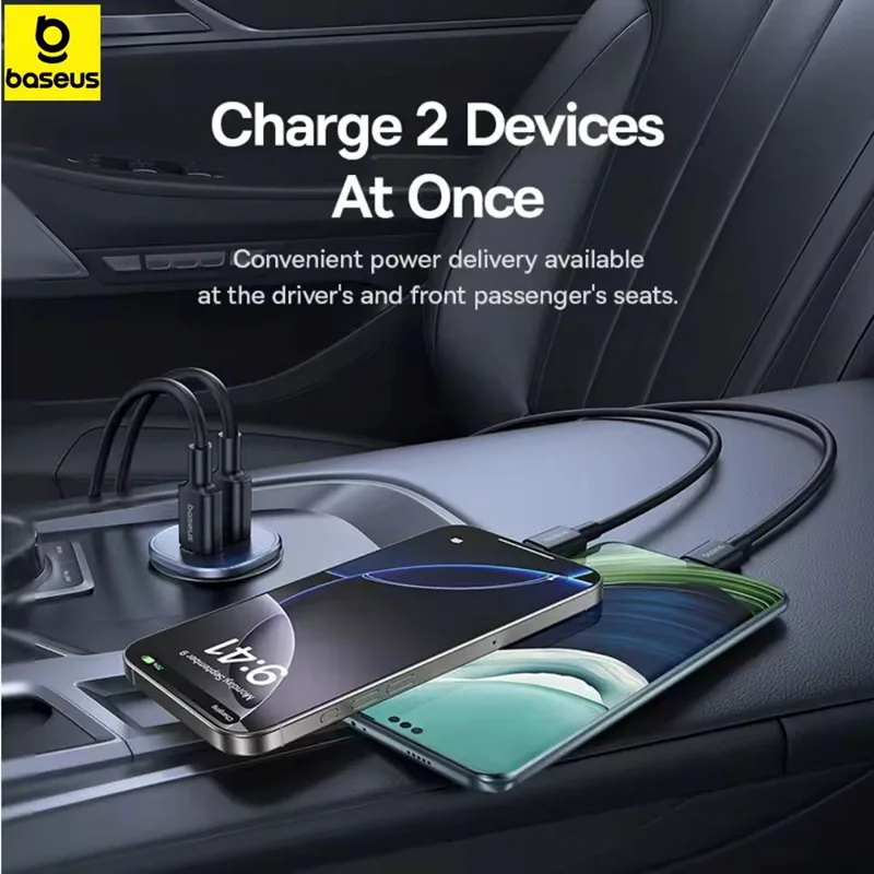 شارژر فندکی 30 وات دو پورت بیسوس مدل GoTrip BS-C15C1
