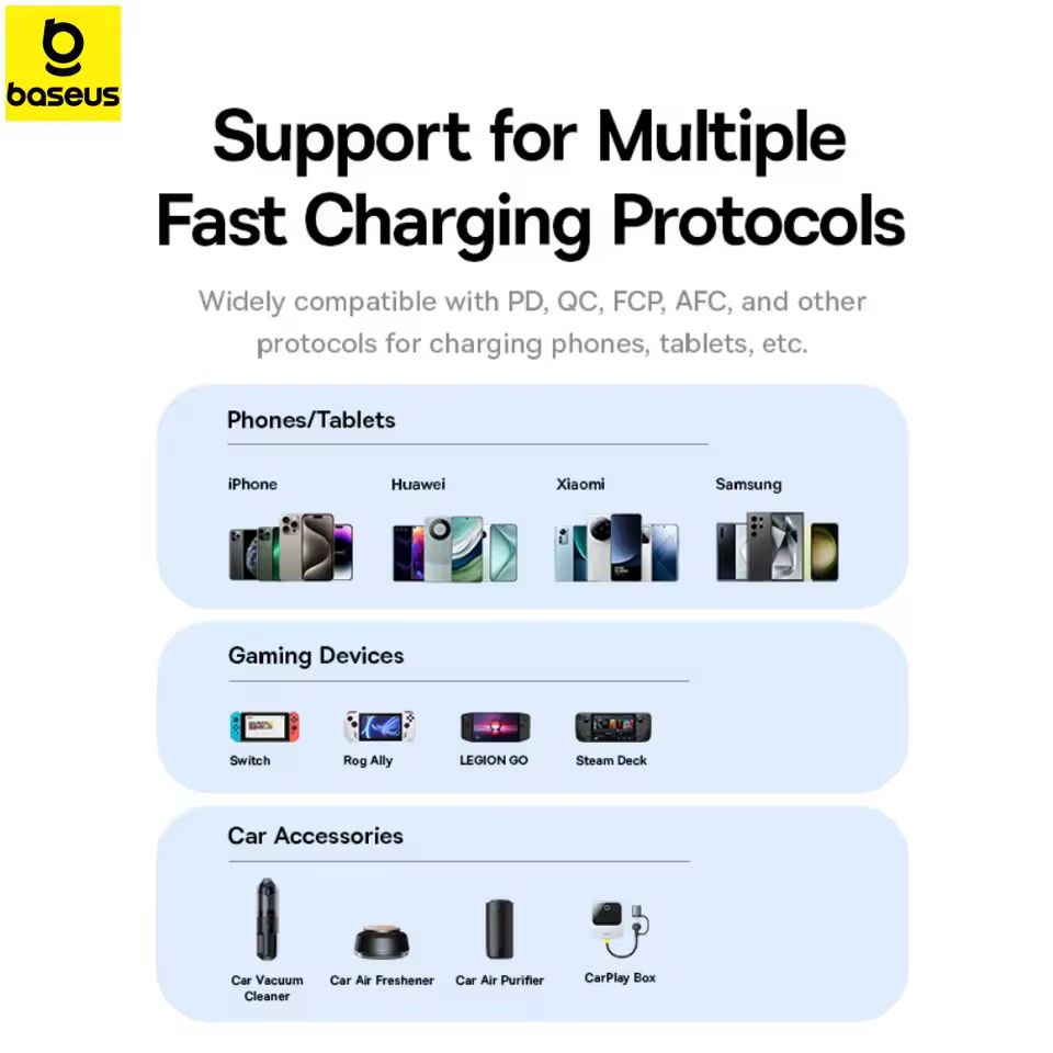 پروتکلهای شارژ سریع پشتیبانی شده: تحویل برق (PD)، شارژ سریع (QC) 4.0/3.0، منبع تغذیه قابل برنامهریزی (PPS)، پروتکل سوپرشارژ (SCP) و شارژ سریع تطبیقی (AFC).